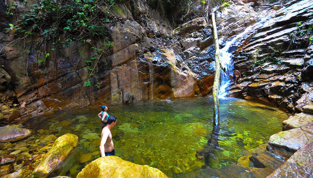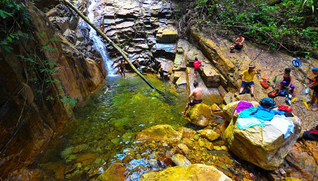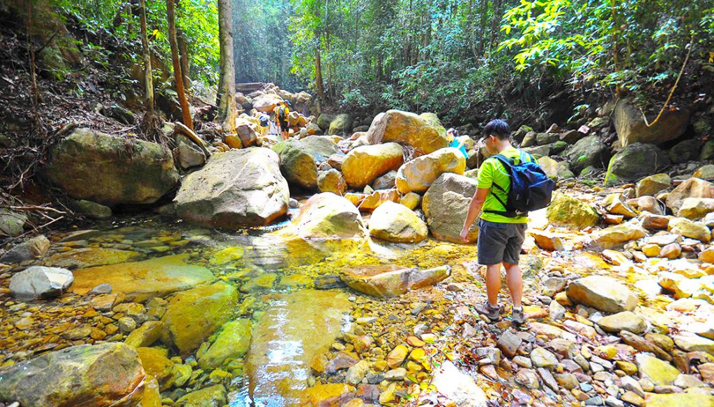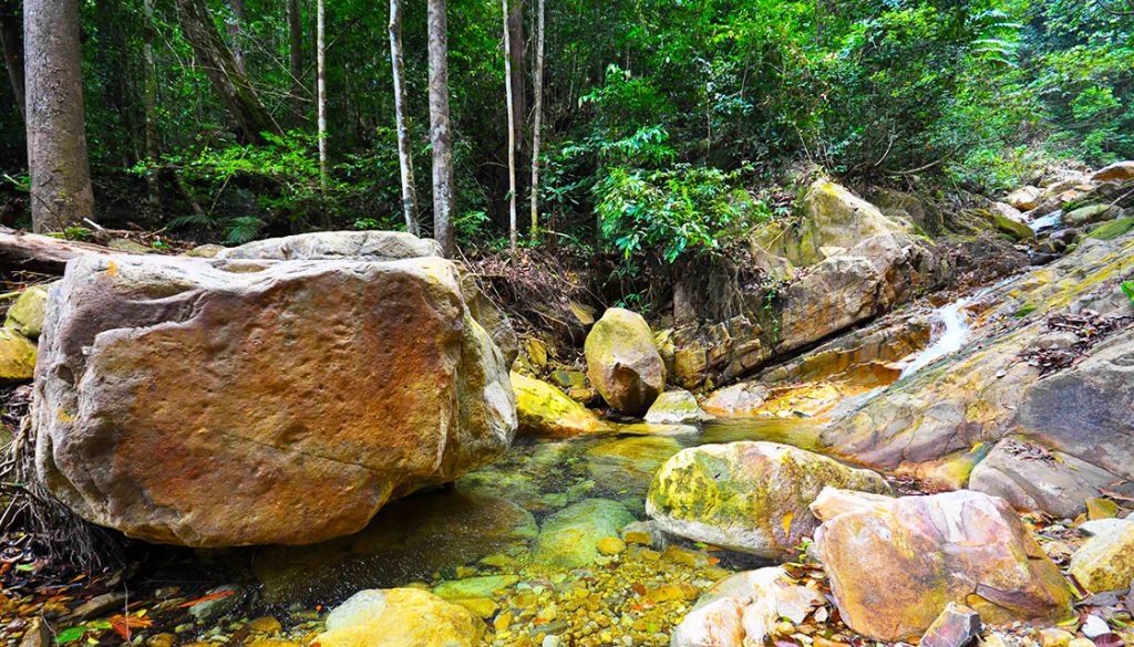 As this is a detour from the original jungle trek with tags, you will encounter a primary forest from here onwards. It is advisable for someone experienced to lead the way from this point onwards. You will walk on huge wet rocks immersed in clear mountain streams along the way. You will see natural crystal clear and icy cold ponds along this trail. Walking along this trail, you may also encounter landslides and erosions but fear not, as these are part and parcel of a primary forest. Keep walking for approximately 45 minutes and you will reach a hidden waterfall or the Gem of Santubong.
