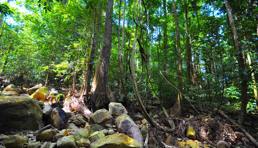 As this is a detour from the original jungle trek with tags, you will encounter a primary forest from here onwards. It is advisable for someone experienced to lead the way from this point onwards. You will walk on huge wet rocks immersed in clear mountain streams along the way. You will see natural crystal clear and icy cold ponds along this trail. Walking along this trail, you may also encounter landslides and erosions but fear not, as these are part and parcel of a primary forest. Keep walking for approximately 45 minutes and you will reach a hidden waterfall or the Gem of Santubong.