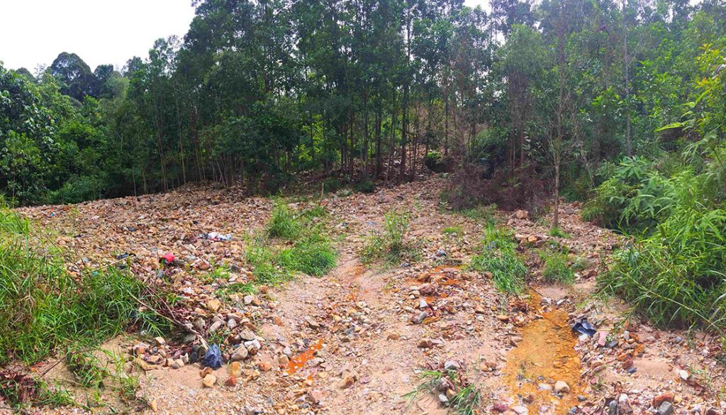 We started off and explored the outer entrance 100 metres before the forest, and found it uncertain. From where we stood atop the road, we did not see an opening trail. But getting “down” to the rocky patch from road level was dicey. This is where danger truly starts. If one tripped, it could go three ways. One, pick up yourself and dignity and carry on. Two, minor or severe bruising or lacerations. Three, severe injuries to the epidermis, dermis and/or subcutaneous tissue or tears, fractures or broken bones. Clambering down the rock debris is not to be taken lightly. Neither is walking across the piles of rocks and stones. This is clearly a precarious obstacle.